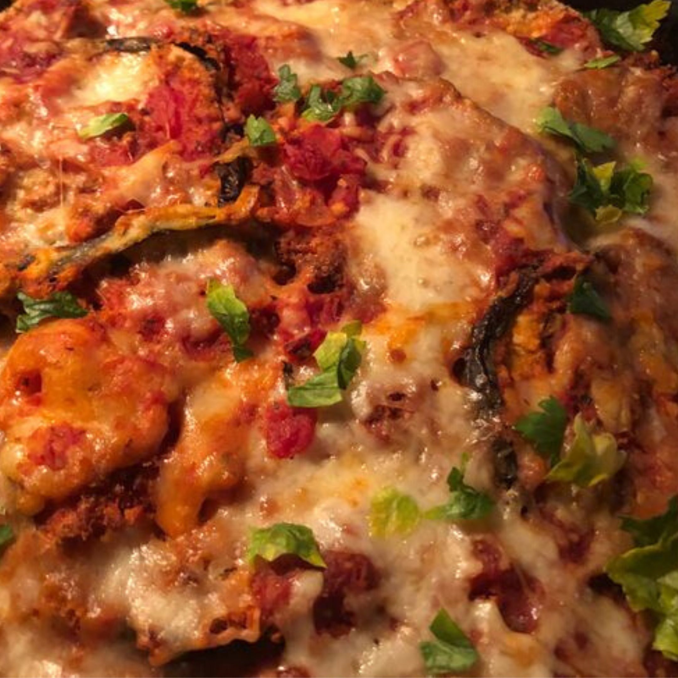 Apply enough marinara to cover the bottom of a casserole dish, place half of the eggplant on top of the marinara. Spoon another layer of marinara over the top followed by ¾ cup mozzarella. Apply the remaining eggplant on top of the cheese followed by the remaining marinara and one remaining cheese.